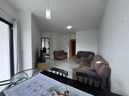 Apartamento mobiliado a venda, com 1 dormitório, sala com sacada, cozinha, área de serviço e banheiro social.