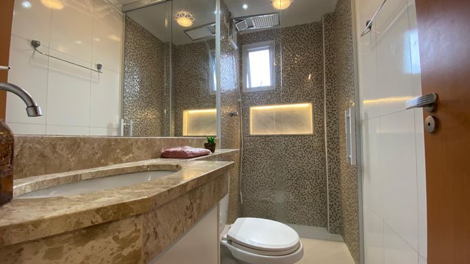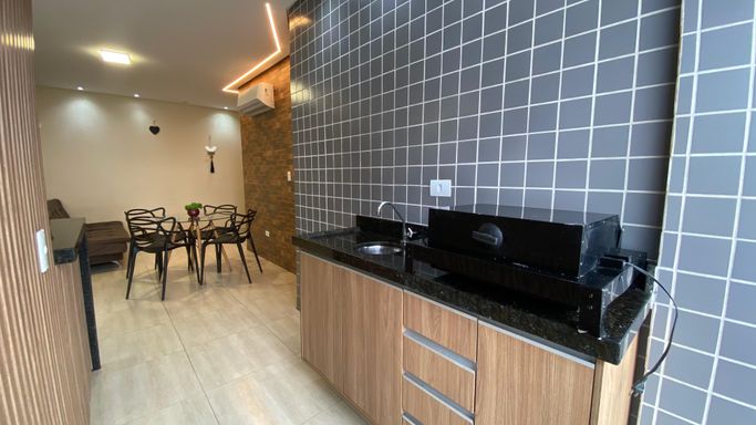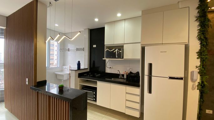 Apartamento a venda, com 1 dormitório, sala 2 ambientes, cozinha, área de serviço e banheiro social.