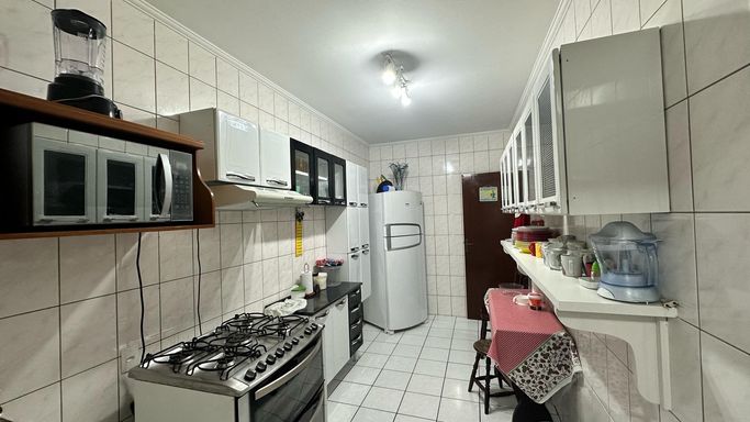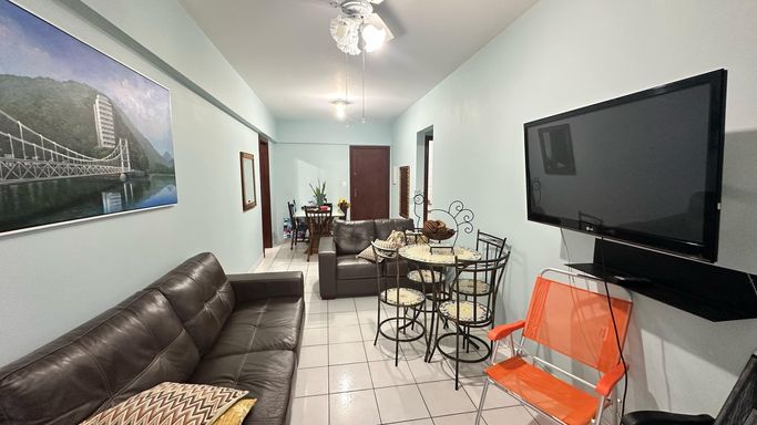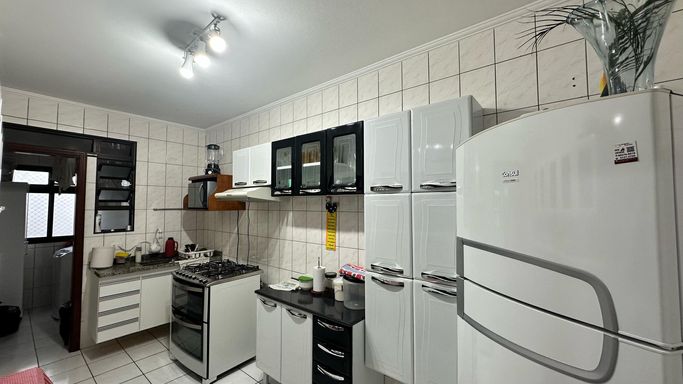 Apartamento a venda, com 1 dormitório, sala 2 ambientes com varanda, cozinha, área de serviço e banheiro social.