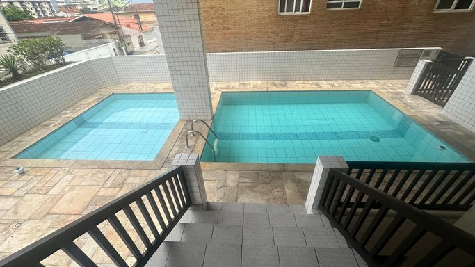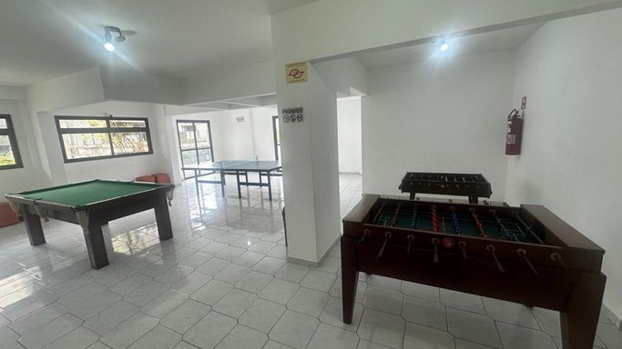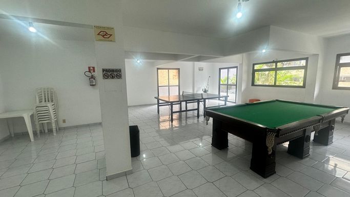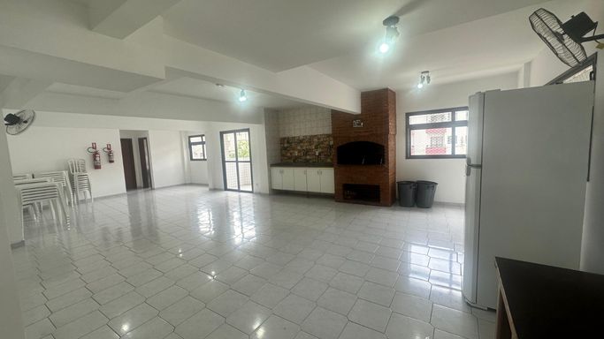 Condomínio a uma quadra da praia, com lazer: piscina, salão para festas, salão de jogos e espaço kids.