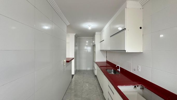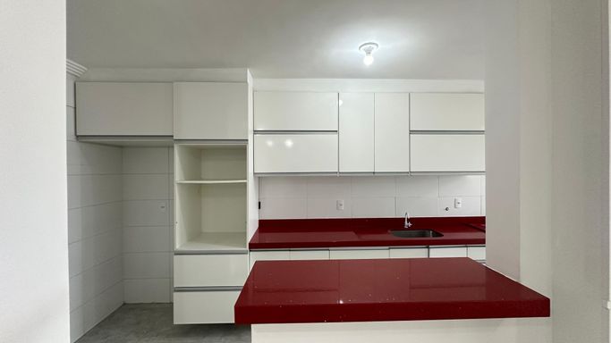 Apartamento a venda, com 2 dormitórios sendo 1 suite, sala, cozinha, área de serviço e banheiro social.