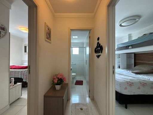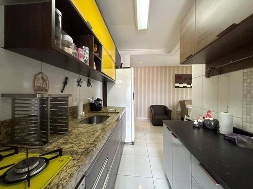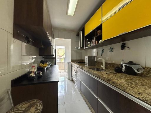 Apartamento a venda, com 2 dormitórios sendo 1 suite, sala 2 ambientes, cozinha, área de serviço e banheiro social.