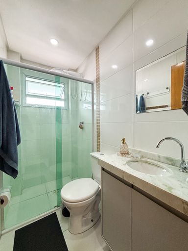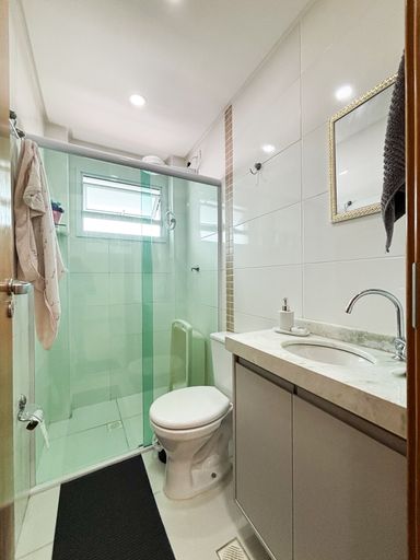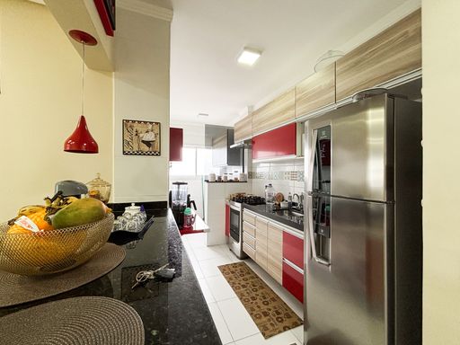 Apartamento a venda, com 2 dormitórios sendo 1 suíte, sala 2 ambientes, cozinha, área de serviço e banheiro social.