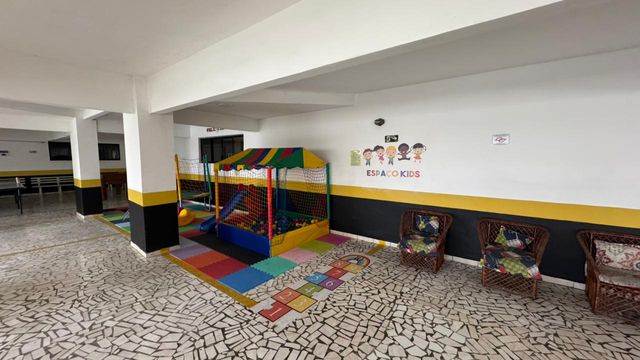 Lazer: piscina, salão de festas e espaço kids