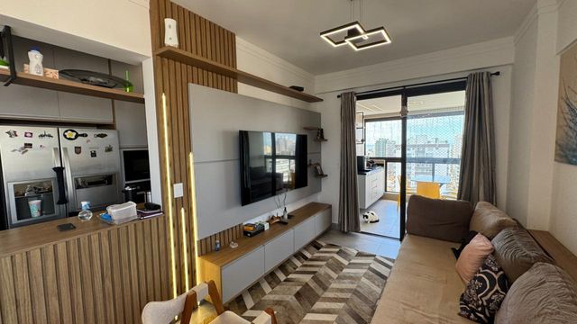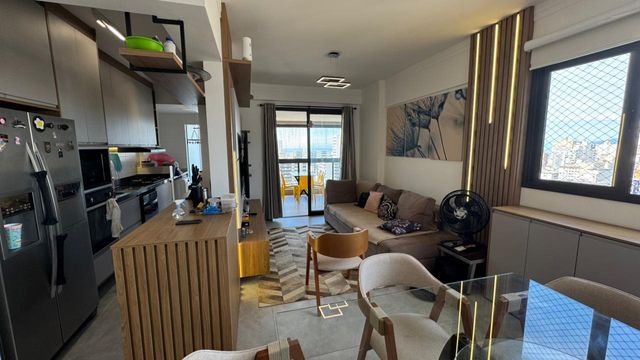 Apartamento a venda, com 2 dormitórios suítes, sala 2 ambientes integrada com cozinha, -área de serviço e lavabo.