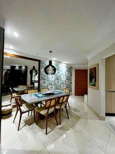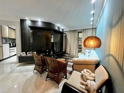 Apartamento todo mobiliado e decorado, com 3 dormitórios sendo 2 suítes, sala 2 ambientes, cozinha, área de serviço e banheiro social.